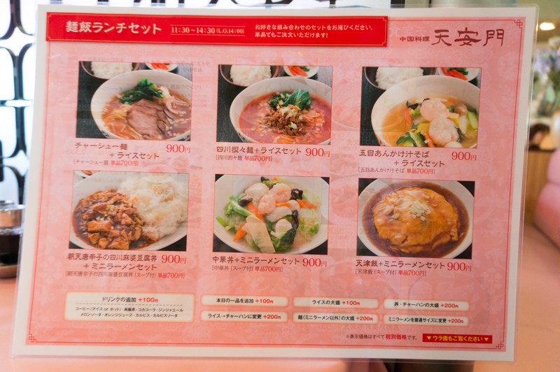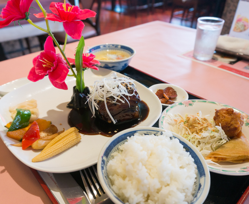 以前あったお昼のテーブルオーダーバイキングや飲茶セットなどはなくなったようですが、定食の価格帯は前と変わらない感じでした。