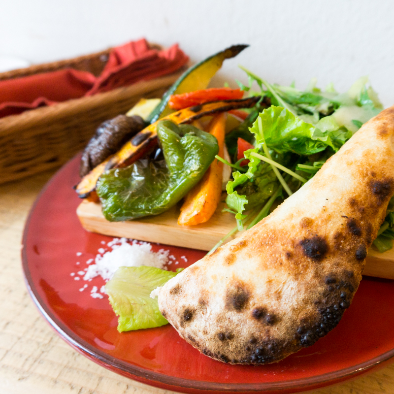 野菜の薪窯焼き・フォカッチャ・サラダ。