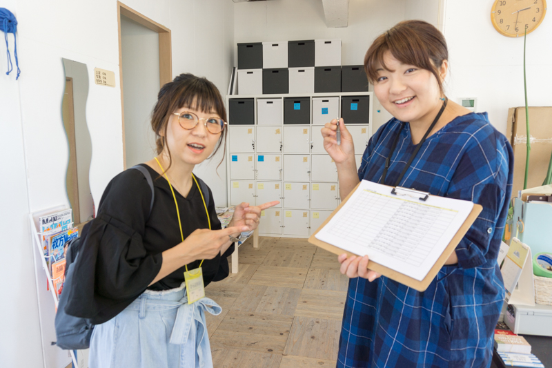 書き終えたら体験用の名札をもらい、スタッフから設備の説明を受け、