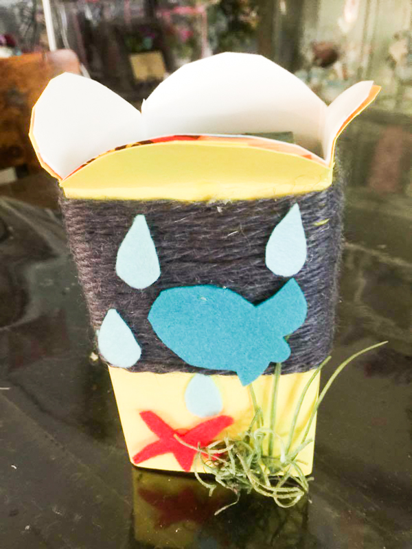 ▼牛乳パックにはりはり、巻き巻きして夏の水族館の図柄を作り器にします。