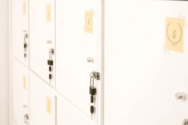 このようにロッカーそれぞれに番号と南京錠が。先着で好きな場所を選んでいただきます。