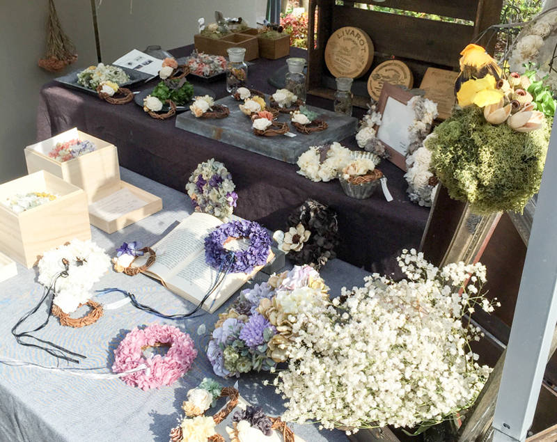 ナチュラルドライ、プリザーブドフラワーのリースやスワッグなどのフラワーアイテムをイベントなどで販売しておられます。