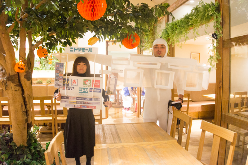 コシニールのハロウィンパーティーや外大のハロウィン取材などで大活躍した、ふろ@ひらつーが作ったニトリモールとすどん@ひらつーが作った枚方T-SITEを展示します!