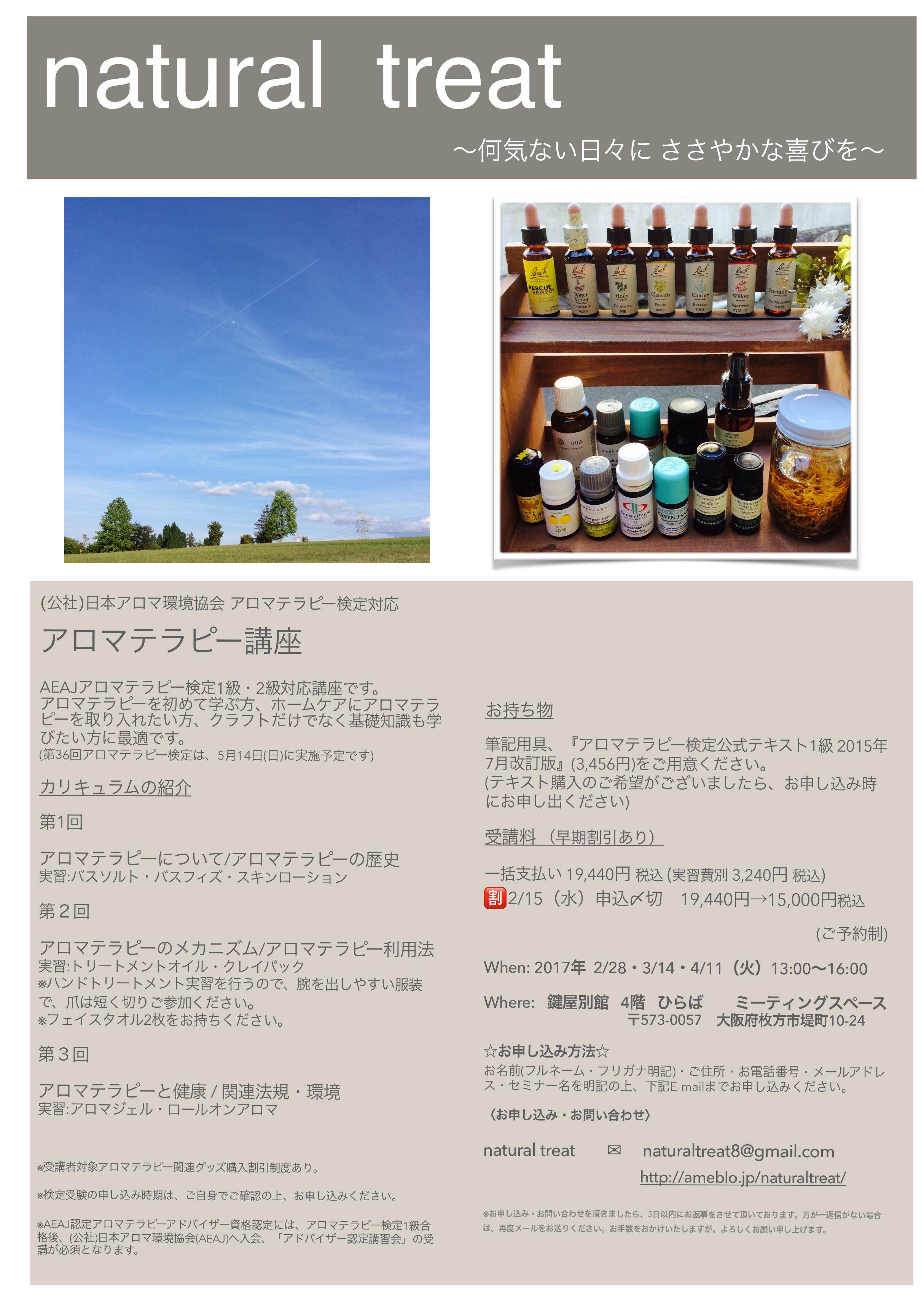 その1(2/28・3/14・4/11) アロマテラピー講座 NEW!!(早期申し込み割引あり)