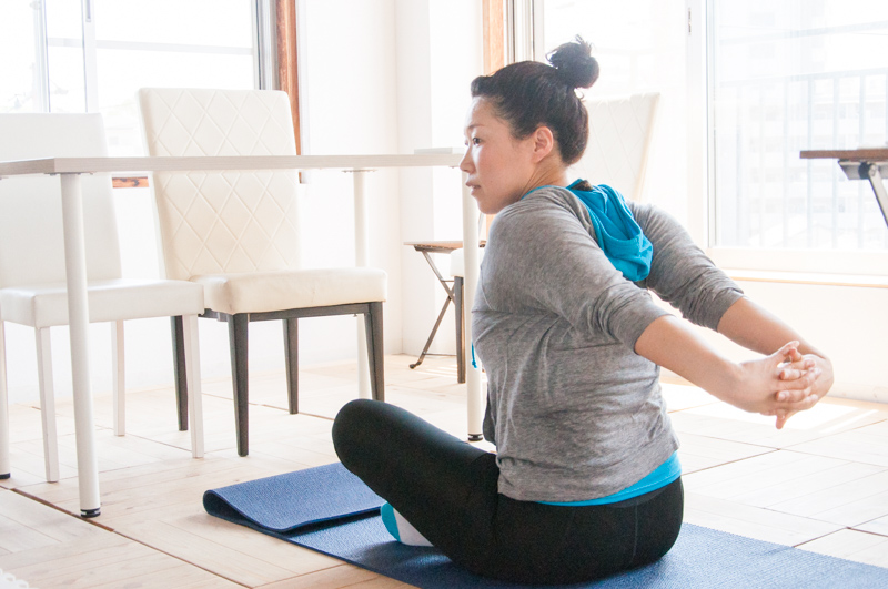 基本的にはみなさん馴染みのあるストレッチと一緒。それに一つ一つ、浜崎さんがどこにどんな効果があるのか説明してくれます。一つの動きを丁寧に行っていくのでじっくりと身体がほぐれていく感覚を味わえ、逆に自分の動かしづらい部分や伸ばしにくいところにも気付くことが出来て自分の身体としっかり向き合える時間に。