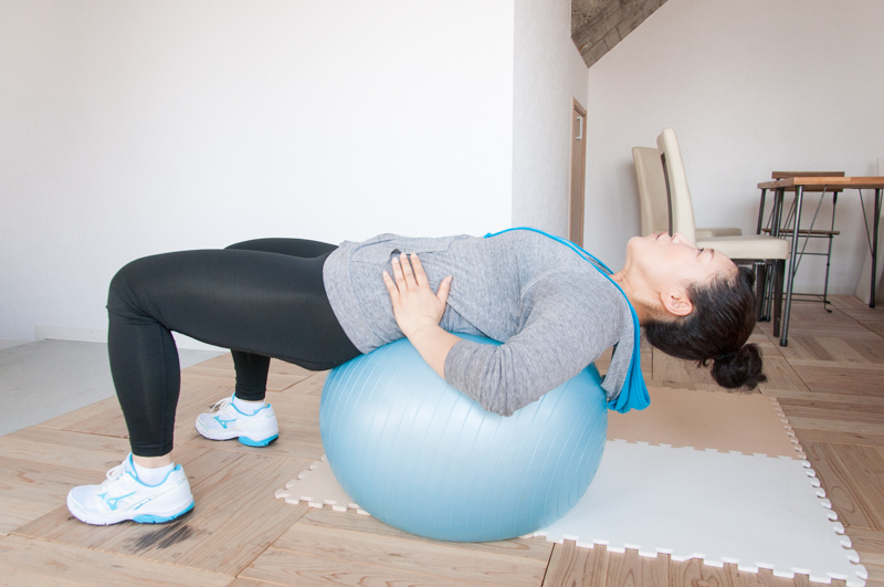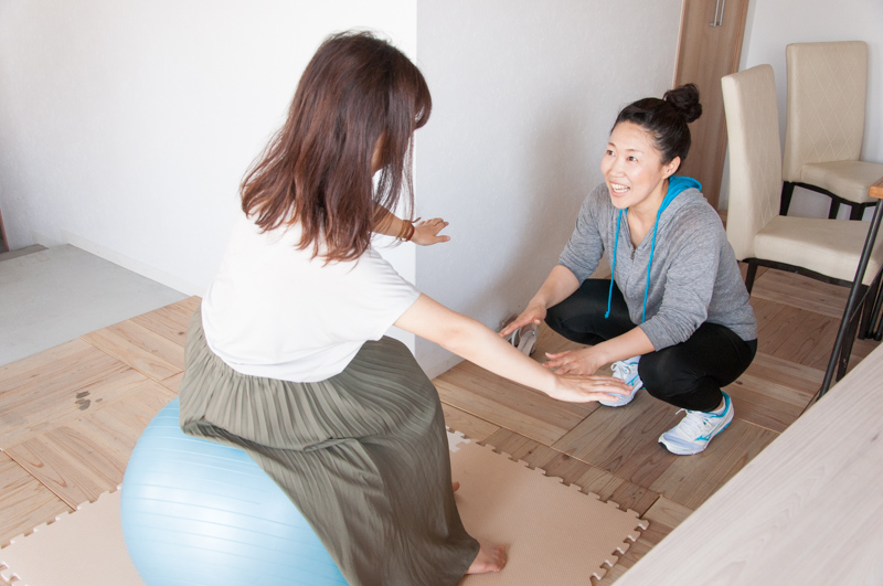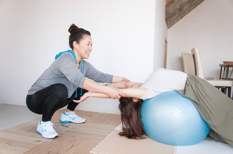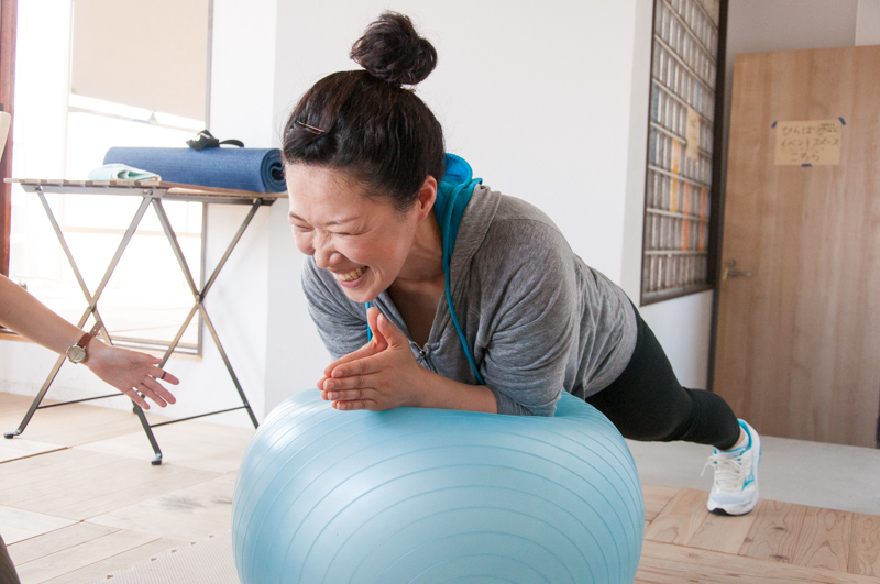 自分の動きを見て身体の長所や短所を言ってもらえるので、課題が分かり普段の生活の中でも重点的にトレーニングしたい部分が見えてきました!バランスボールなどのアイテムを使った運動も。