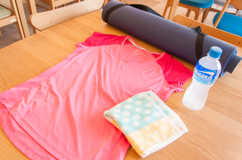 私はふざけた格好でトレーニングしてしまいましたが、みなさんは動きやすい服装をお持ちくださいね!ひらばで着替えることも可能です。