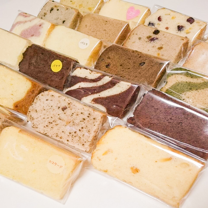 すべて国産材料で季節の果物や野菜を使用した、無添加のシフォンケーキ(210~280円)