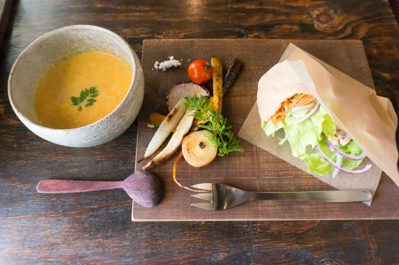 釜戸で炊くご飯・自家製味噌・大豆や旬の野菜をたっぷりと使用した、 1食で30品目近く使用した身体にやさしいランチも召し上がっていただけます。