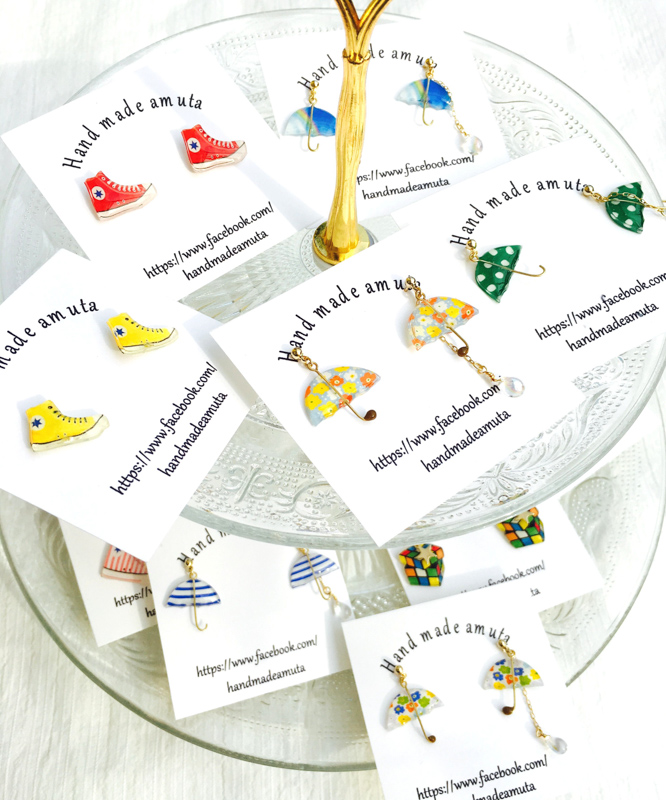はじめまして。くるくるという屋号でアクセサリーなどを製作しています。ガラスで作ったパーツやビーズ、リボンにボタンなど様々な材料で大人も楽しめるカラフルなアクセサリーや小物を作っています。