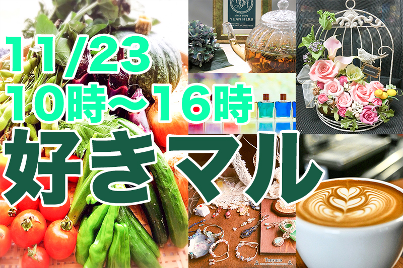 そこで、11月の好きマルのテーマは収穫祭ということで新鮮な野菜や心がホッとするスイーツなど美味しい食べ物を中心に、冬物雑貨などのお店を中心に出店予定です
