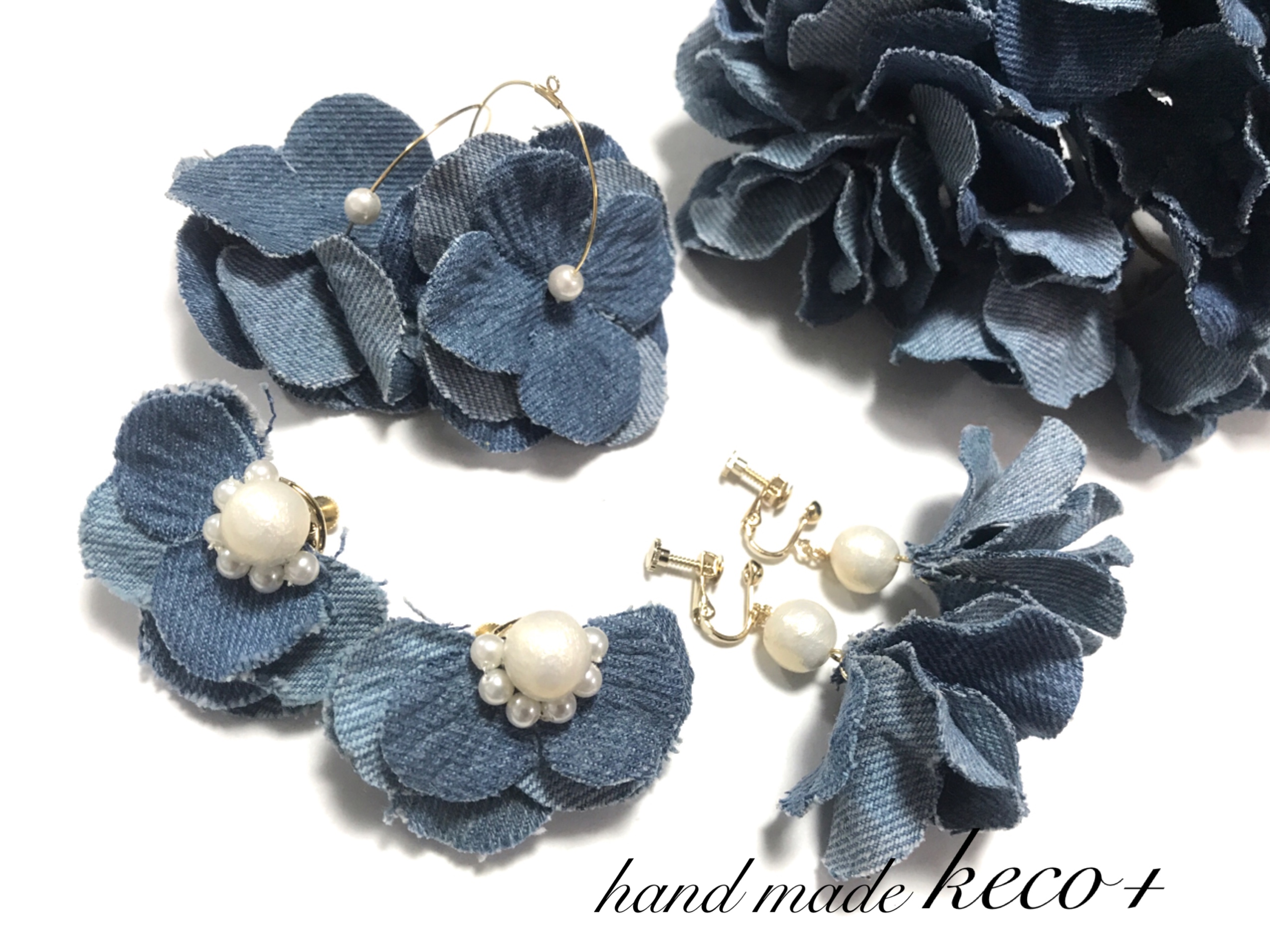 真っ白な布を一枚ずつ手染めして作った布花アクセサリーや雑貨です。