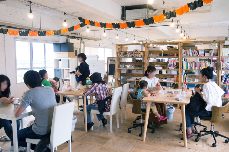 ▽4階のコワーキングスペースにたくさんお店が並びます。