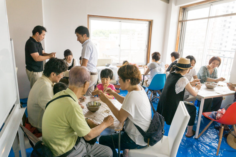こちらもあっという間に定員に達した500円で参加できるツルツルの泥ダンゴをつくれるワークショップ。イベントスペースがいつもの様子から様変わり!たくさんの方が参加されていました。