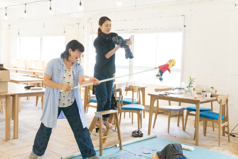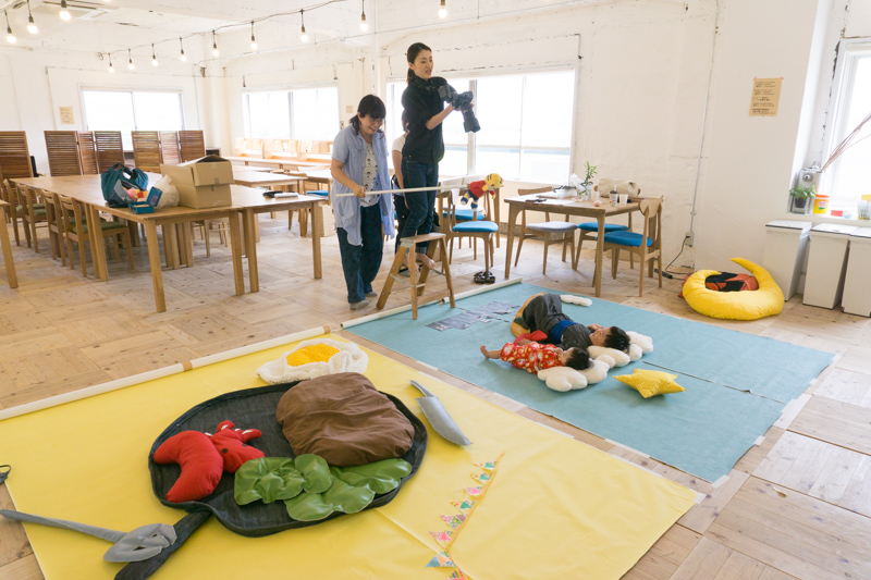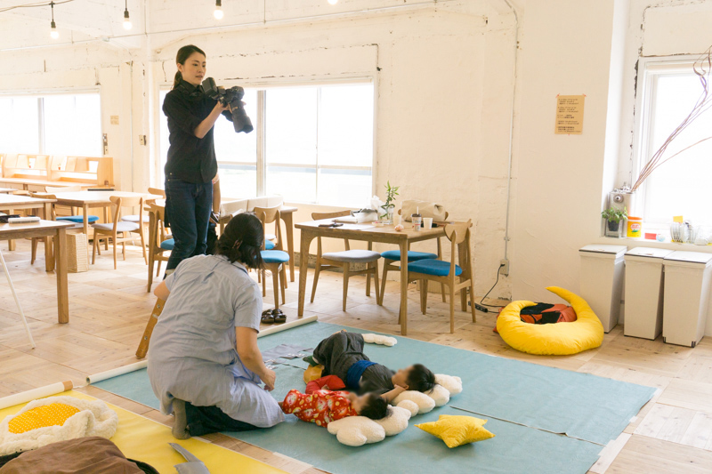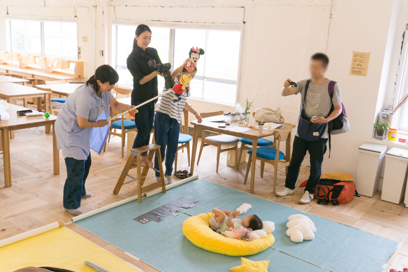 脚立の上から撮影しているのが写真のらがーのカメラマンのもっさんで、子どもちゃんの横であやしているのがtorito teさんです。