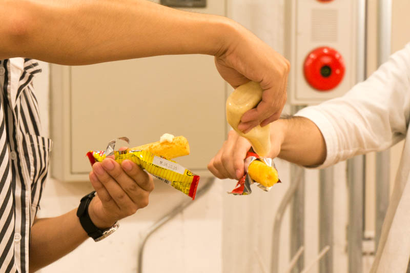 7月8日(金)にひらばで開催された「うまい棒のよりうまい食べ方を模索する会」の様子をご紹介します!うまい棒を何かといっしょに食べることで、1つたった10円の棒に秘められた可能性を引き出そうというこちらのイベント。