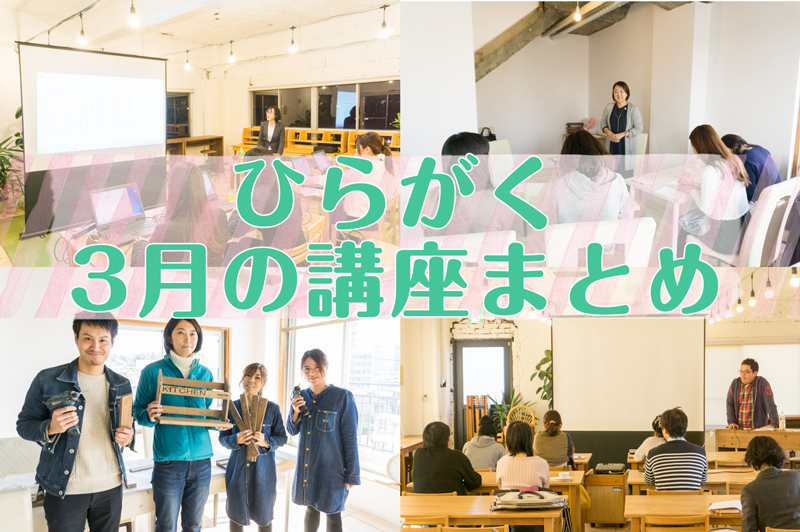 3月講座の募集スタート!現場のプロからWEB/EC/Excel/DIY/婚活をホンキで学ぶ「ひらがく(ひらばの学校)」入学金無料は3月まで【ひらば】