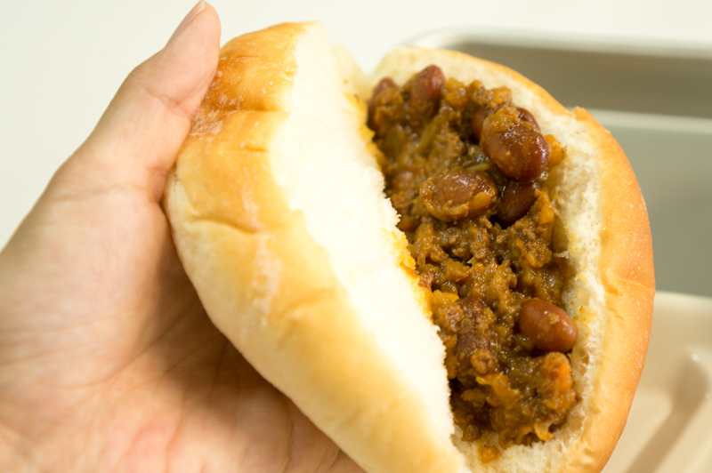 パーカーパンにハンバーグをはさんで食べてください。