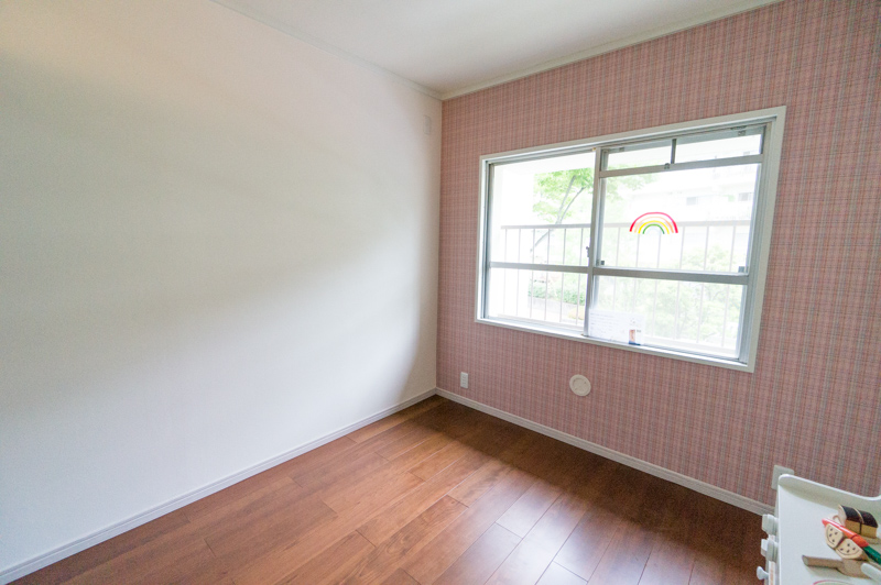 メインの寝室は元々和室だったんですが洋室にしました。壁紙も一面だけポップなものにしています。上下分かれた押し入れをひとつのクローゼットにし、収納力もアップさせました。