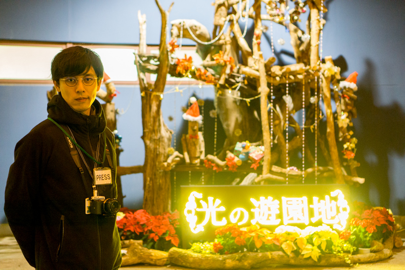 ↓「光の遊園地」の時間帯に撮るとこんな感じで、雰囲気が変わります!装飾もしれっとクリスマスバージョンになってますね!ぜひ記念写真を撮っちゃいましょう!