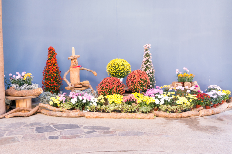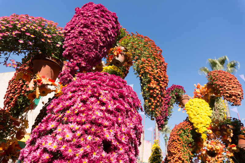 こちらも季節限定になりますが、先ほどのパームウォークの真ん中に設けられた壮大な「懸崖菊(けんがいぎく:崖のように尖った、垂れ下がった菊のこと)のオブジェ」!