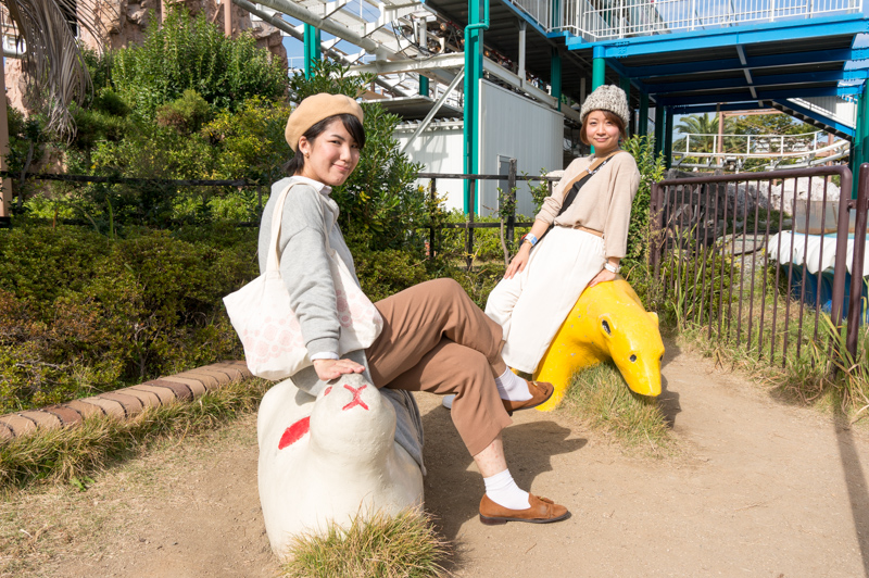 さらにその少し手前には、ゆるい系のウサギと・・・クマ?も。ぜひ座ってみよう