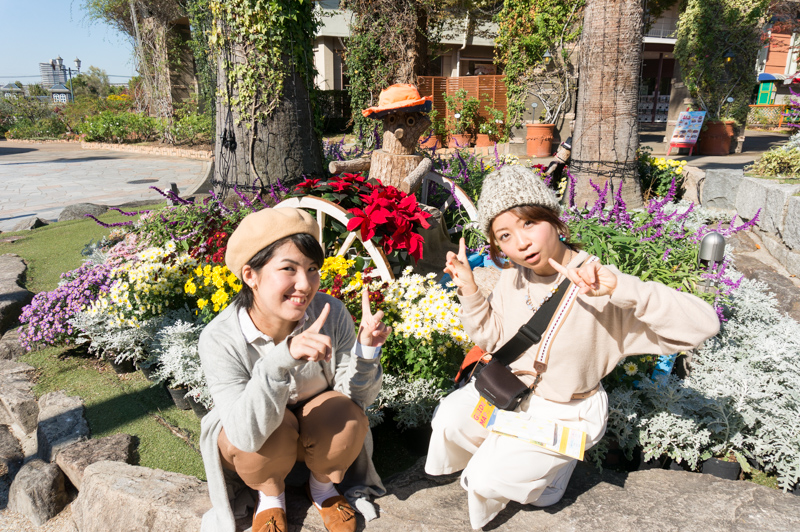 季節限定にはなりますが、ひらパーは紅葉がとてもキレイ。ぜひ色づいた木々を入れて撮ってみましょう!