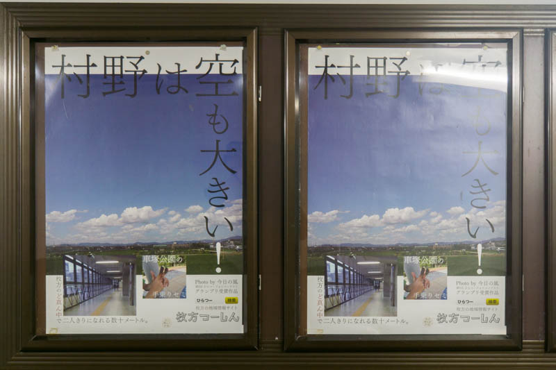 ポスターで一番大きい写真を村野にしたので、掲示するのも村野駅にしました。