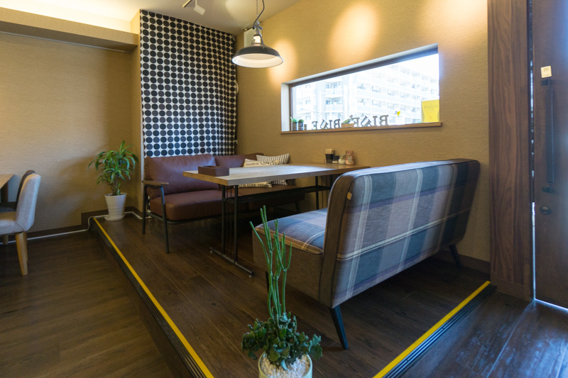 窓際にはゆったり座れるソファ席も。