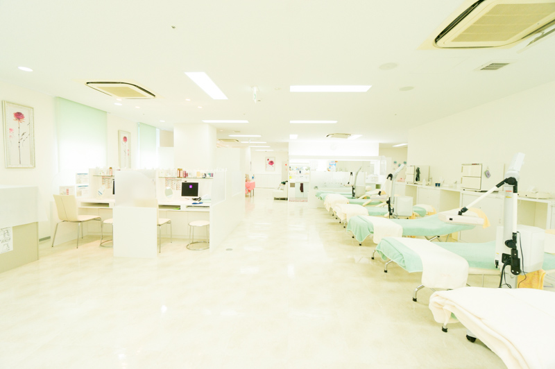 広々した店内は白を基調とした女性専用のフェイシャリストサロン。