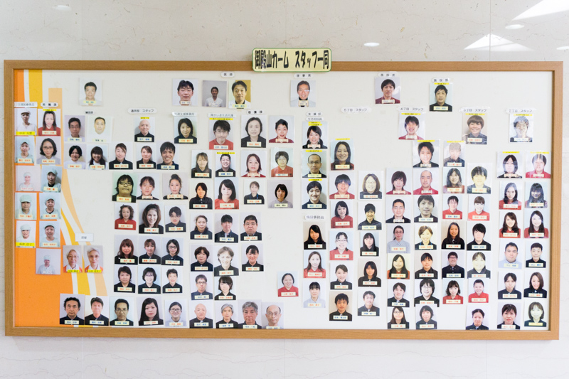 壁面には御殿山カームで働くスタッフの方のお写真がずらり並びます。