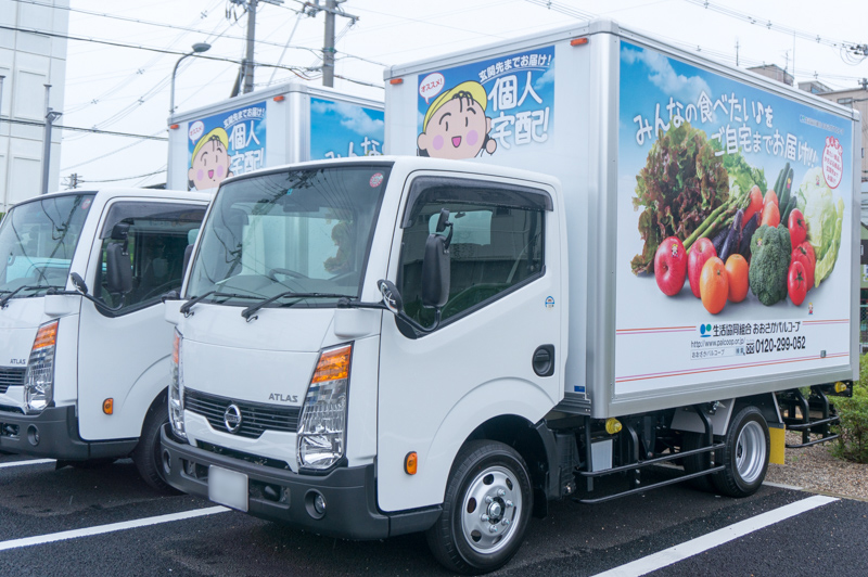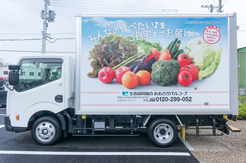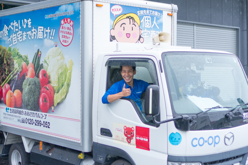 実は、玄関先まで届けてくれるおおさかパルコープの個人宅配の車なんです。