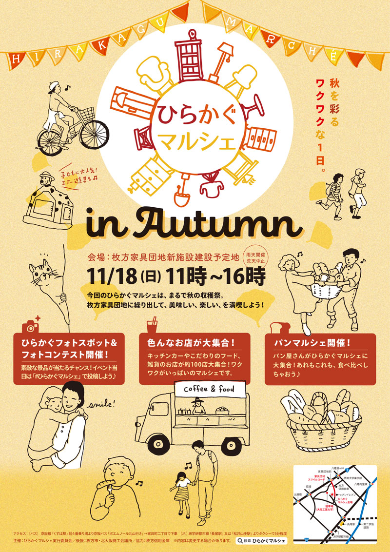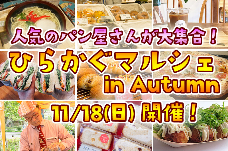 11/18(日)約100ブースの出店、パンマルシェエリアもあり!エアー遊具やフォトスポット、大人も子どもも楽しめるひらかぐマルシェ in Autumn開催!