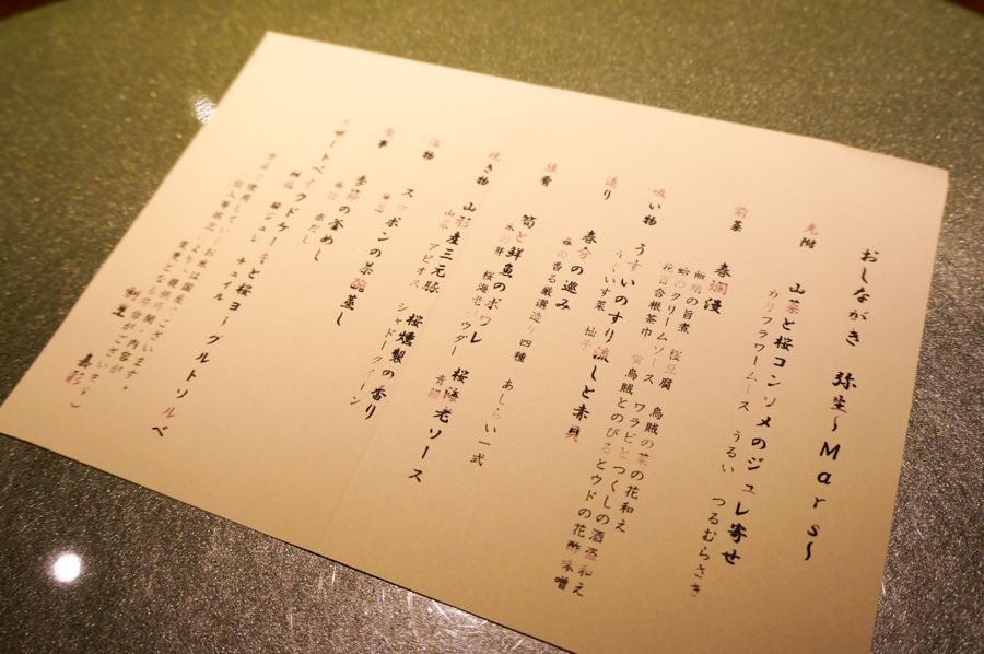 撮影当日のおしながき。