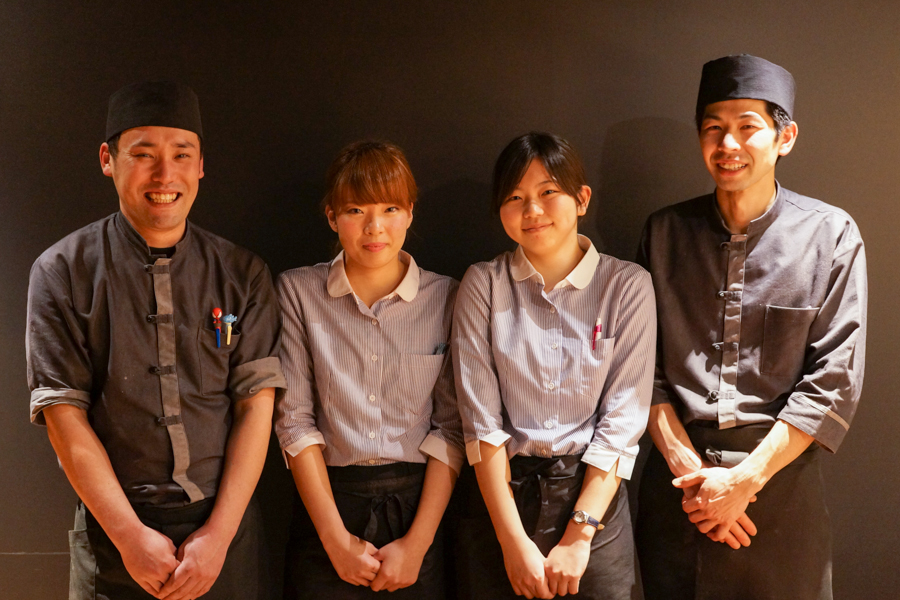 左が料理長の清水さん(和食)とスタッフのお二人を挟んで右がチーフの八田さん(フレンチ)
