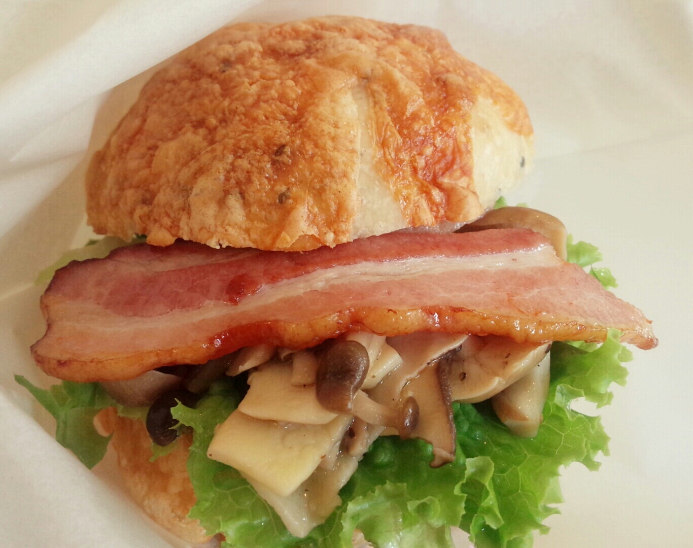 「七穀ベーカリー」の『いろいろきのこのマリネとジューシーベーコンのサンドウィッチ』など【ひらつーグルメ】より。
