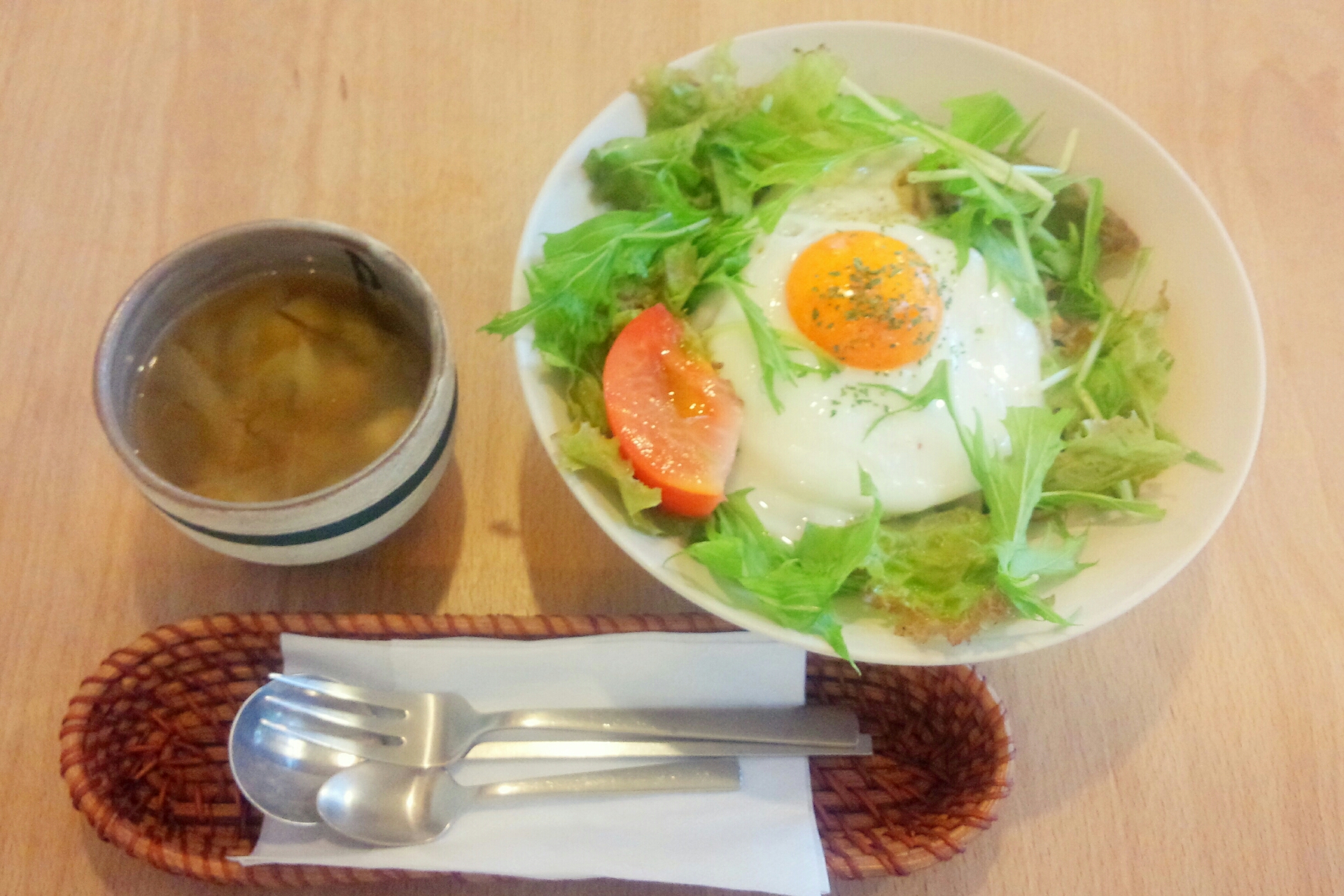 「なかなかの森 喫茶室」の『鶏ひき肉のバジル炒めサラダご飯のランチ』【ひらつーグルメ】より。