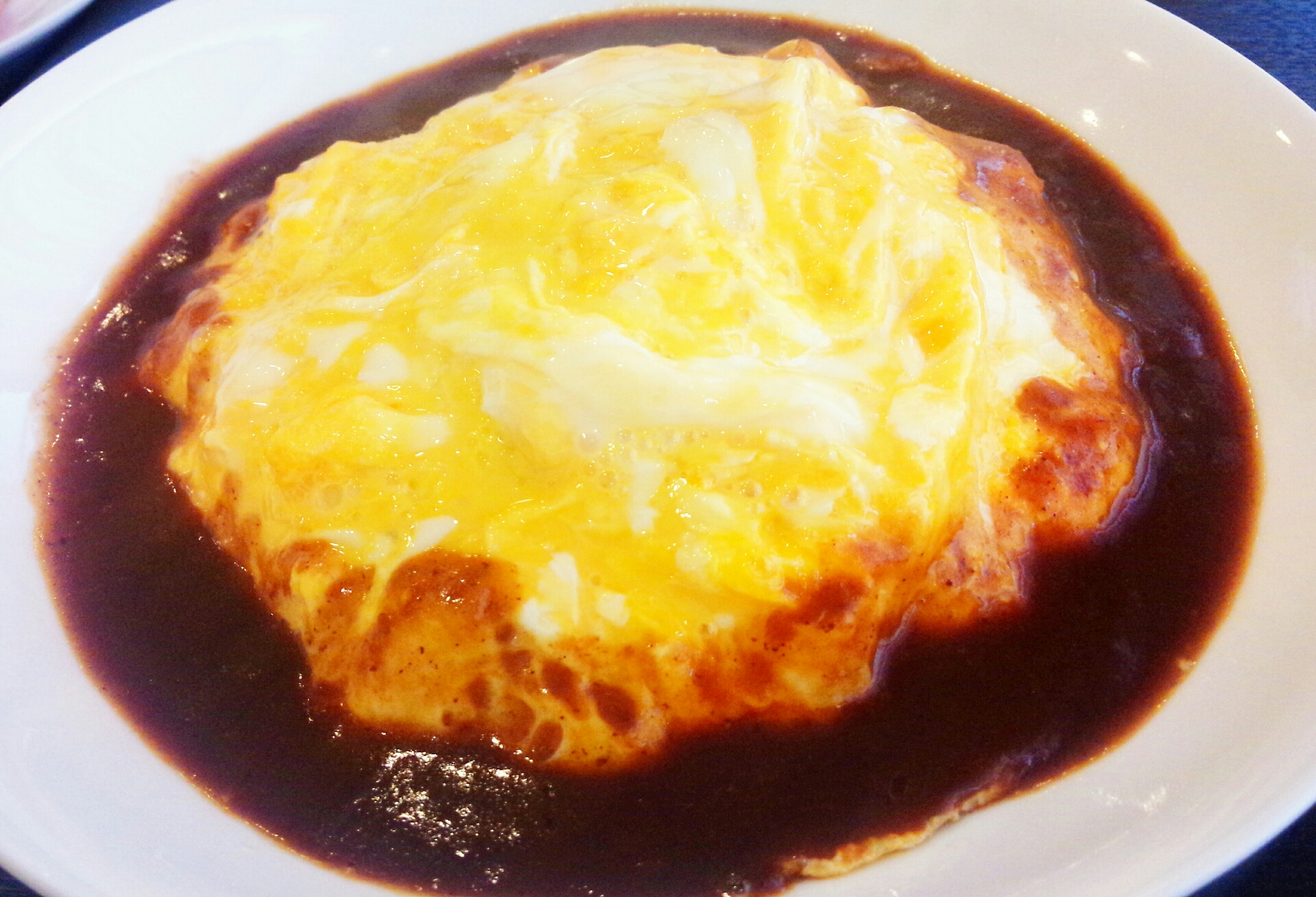 「カフェ アントルメ」の『卵ピラフ デミグラスソースがけ』【ひらつーグルメ】より。
