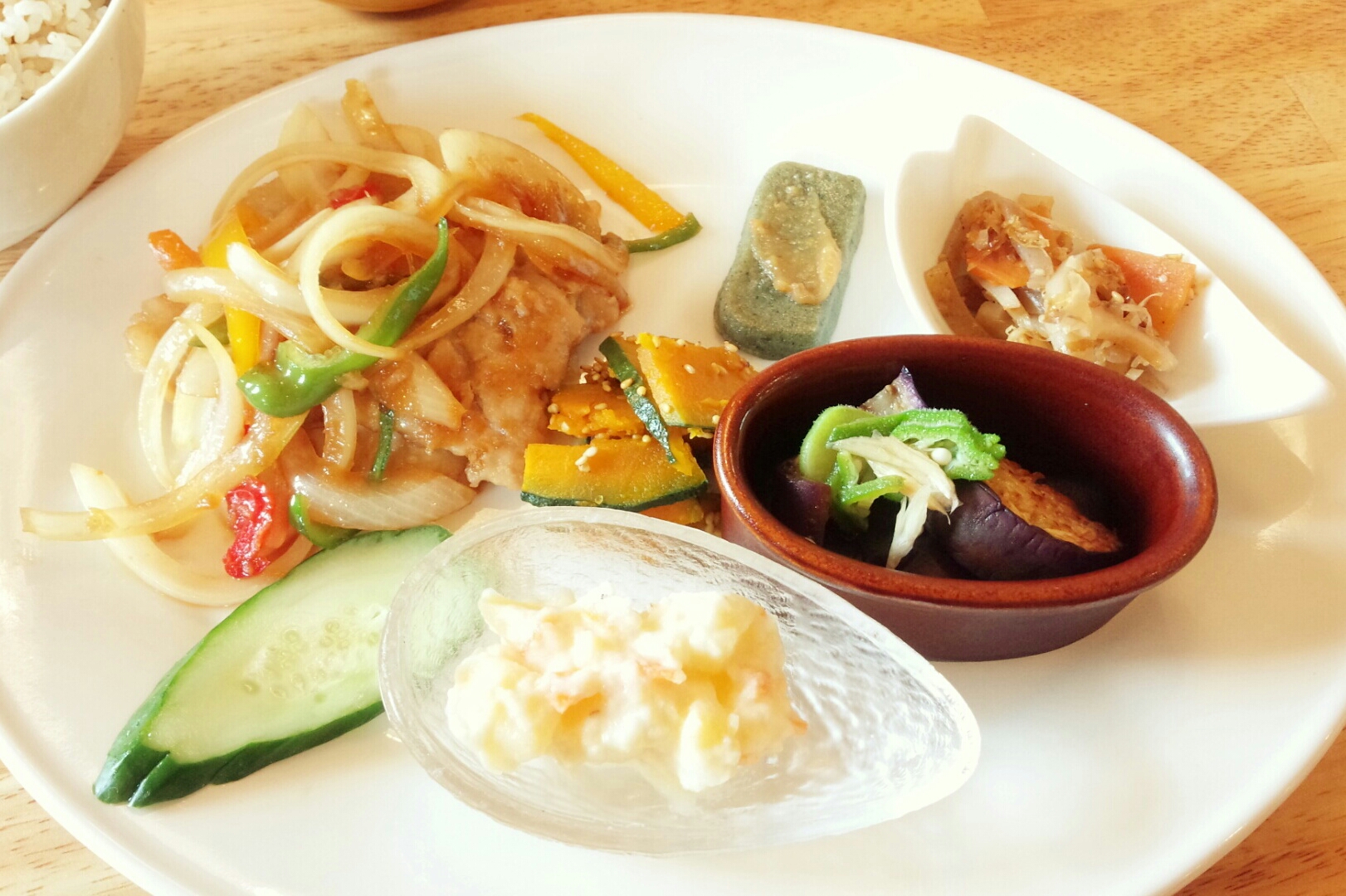 「Lykke(リュッケ)」の『Lykkeプレート(たっぷり野菜の豚のしょうが焼き)』【ひらつーグルメ】より。