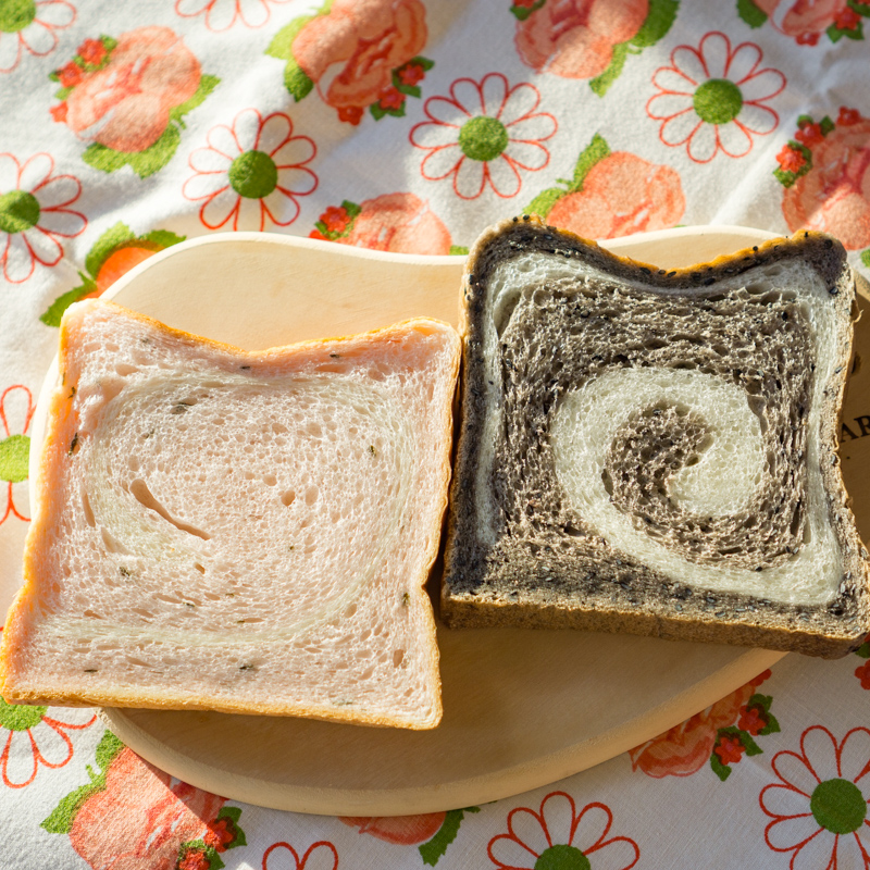 (「Deux Soleil(ドゥソレイユ)」の『さくらと甘酒の食パン』『はちみつと黒ごまの食パン』【ひらつーグルメ】より)