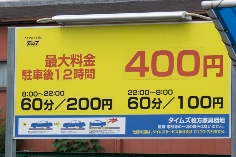 続いては坂道を下った先の信号のそばにあるタイムズ枚方家具団地。地図ではここ。