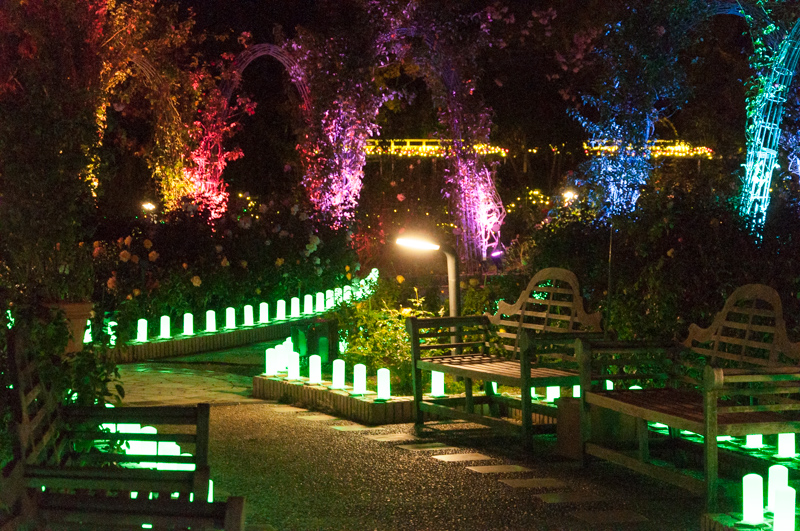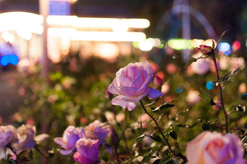 光とバラのコンビネーションが無限大に楽しめる写真好きにはたまらんエリア。