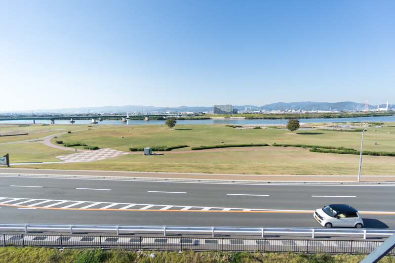 府道13号線沿いに広がる枚方河川公園。