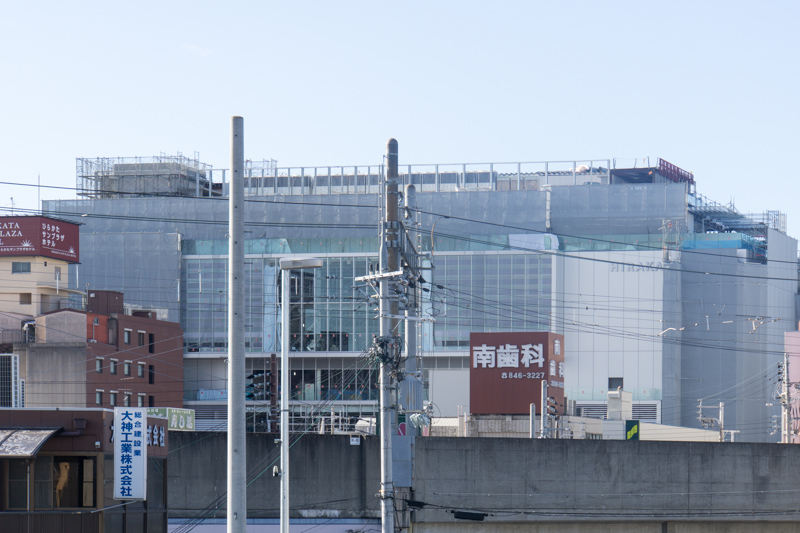 枚方市駅前に建設中の「枚方T-SITE」の北側が片鱗を覗かせてる。「HIRAKATA」の文字も 2015/12