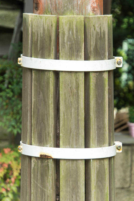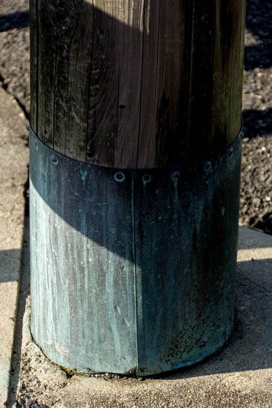 足元は銅で覆われています。木製なので腐ったりシロアリに食べられないように、足元は金属にするのが一般的なんだそう。