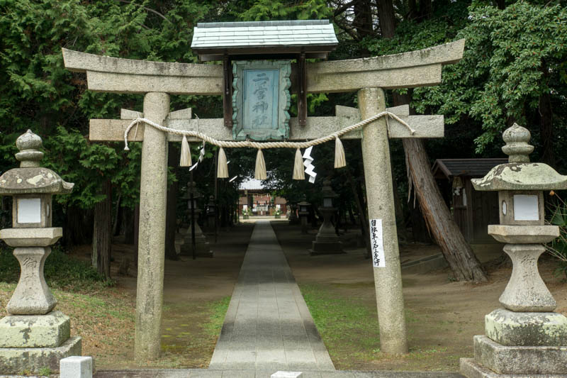 シンプルさに注目の土山神社の鳥居。石鳥居で、形は神明(しんめい)鳥居。