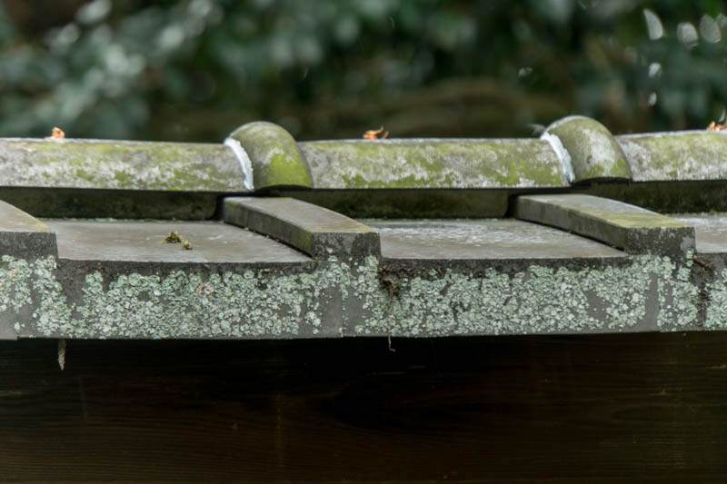 鳥居の一番上の層(笠木と言います)には瓦を使用。