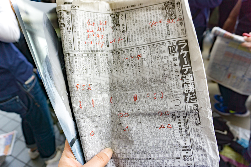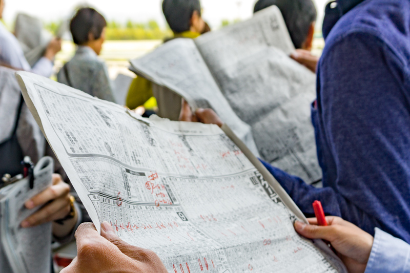 実際は、新聞などに今までの勝率や馬の健康状態など(詳しくはよくわかりませんでしたw)が書いてあるそうなので、それらを参考にして選んで行くそう。