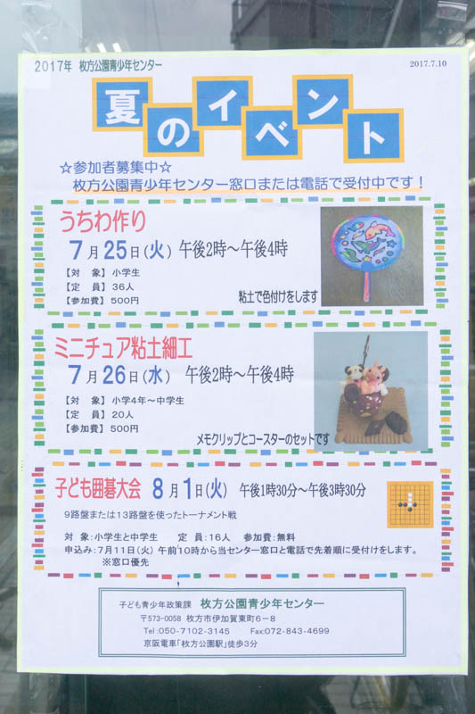 枚方市内で行われる夏休み期間の子供向けイベント・ワークショップまとめ2017【ひらつーまとめ】