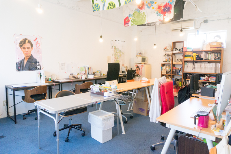 最近人数が増えて手狭になってきたので、真ん中にフリーデスクを設置しました